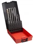 В набор входят буры размером 5х110 мм, 6х110 мм, 6х160 мм, 8х160 мм, 8х210 мм, 10х160 мм, 10х210 мм, 12х210 мм. Все предметы упакованы в пластиковый бокс. Для перфораторов с системой крепления SDS-plus.