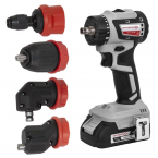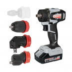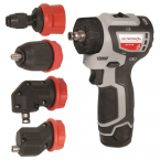 - Комплектуется опционально насадками для закручивания вплотную к углу, углового закручивания/сверления, а также насадкой с механическим зажимом HEX ¼”.