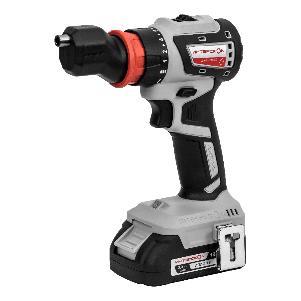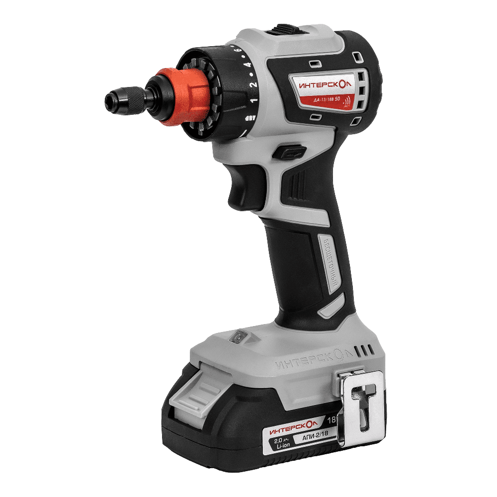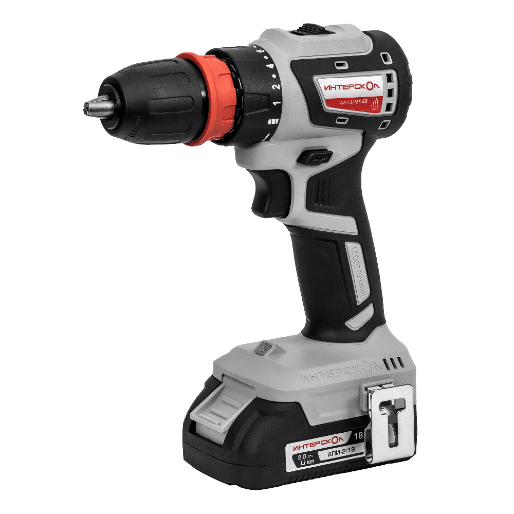 Аккумуляторная дрель-шуруповерт ИНТЕРСКОЛ Комби ДА-13/18В 50, 18 В, 1600 об/мин, с 2 АКБ 2 Ач и ЗУ, в кейсе () 776.2.2.79
