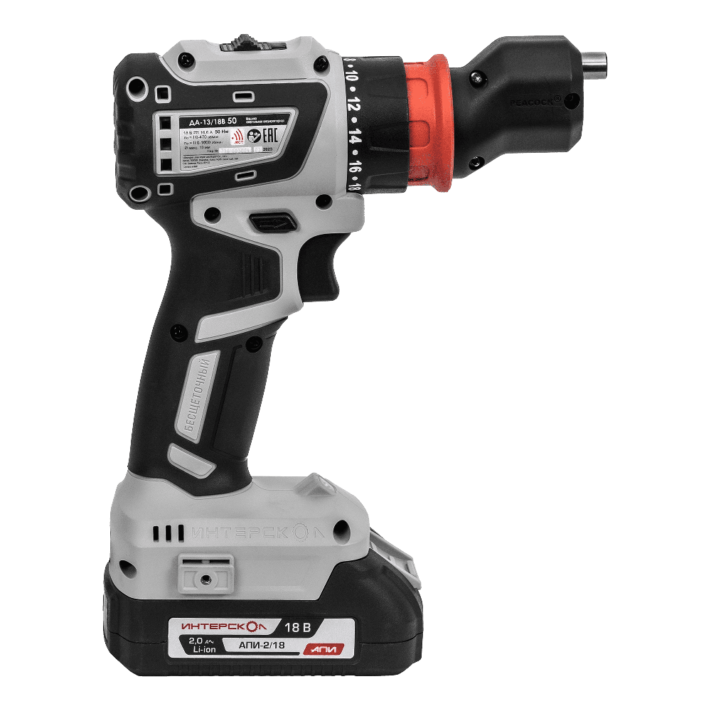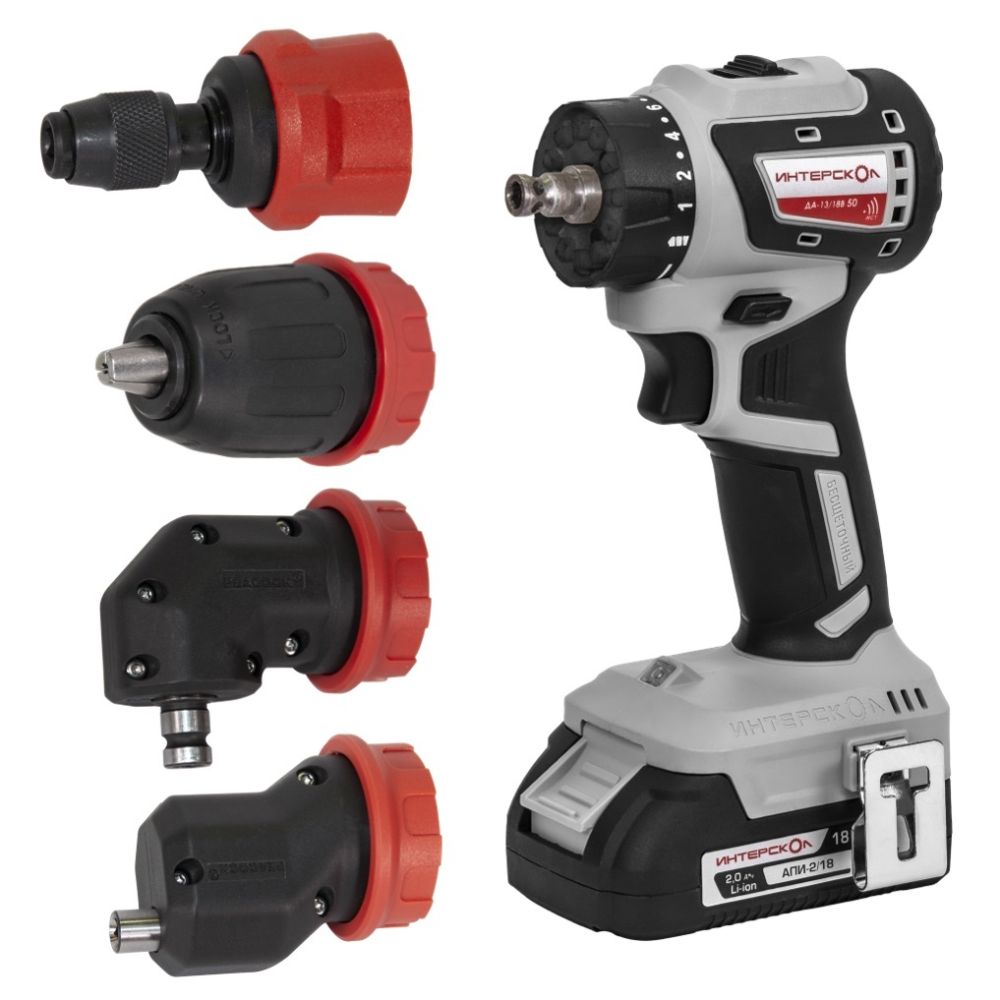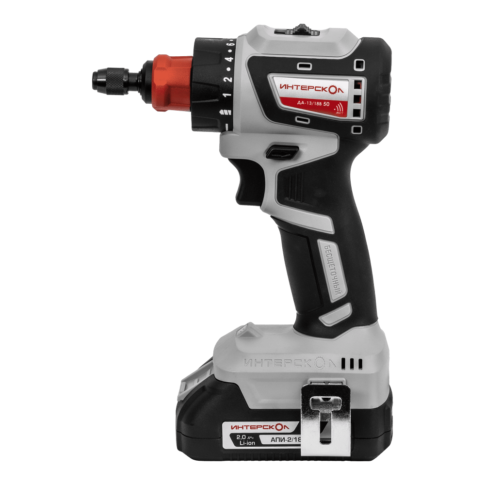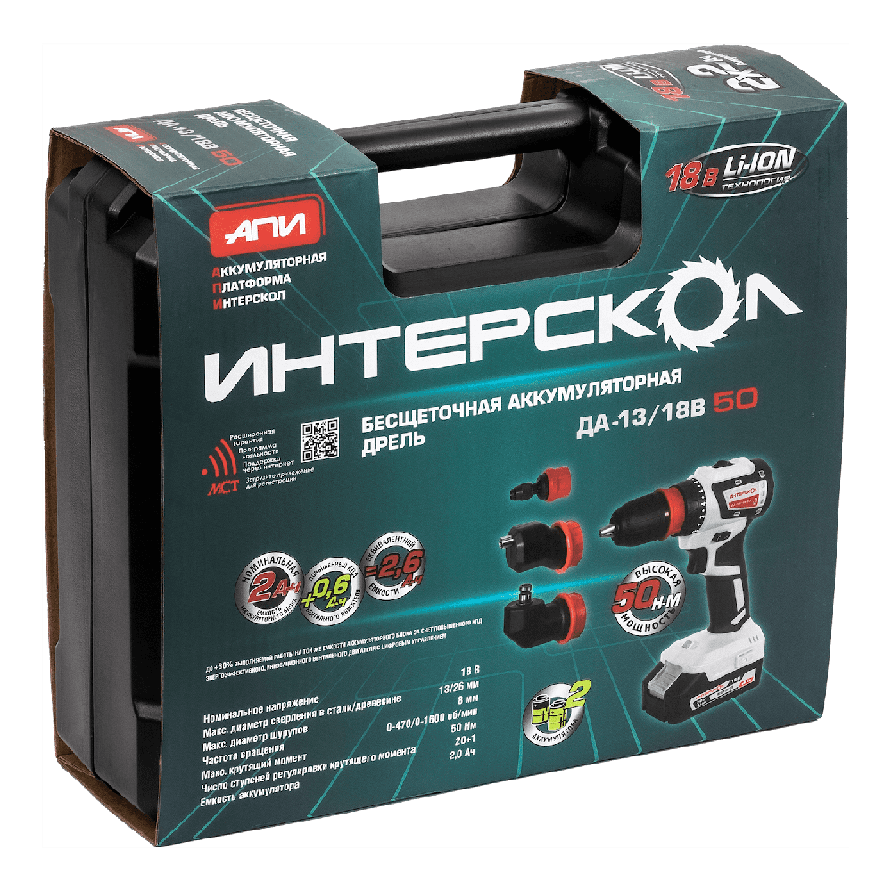 Аккумуляторная дрель-шуруповерт ИНТЕРСКОЛ Комби ДА-13/18В 50, 18 В, 1600 об/мин, с 2 АКБ 2 Ач и ЗУ, в кейсе () 776.2.2.79