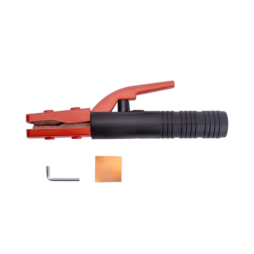 Электрододержатель Foxweld EHM-500A американского типа (основа зубчатых держателей прочный токопроводящий сплав). Держатель сделан из износостойких, термически стойких и прочных материалов. Область обхвата держака ладонью сварщика имеет надёжную электроизоляцию. Покрытый электрод, имеющий основное, рутиловое или целлюлозное покрытие надёжно фиксируется при помощи мощного пружинного механизма.