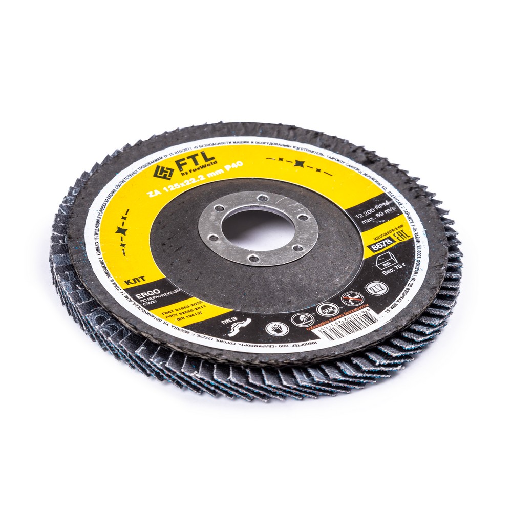 Круг лепестковый торцевой для шлифования по нержавеющей стали FTL Ergo 29 125 х 22,2 мм P40