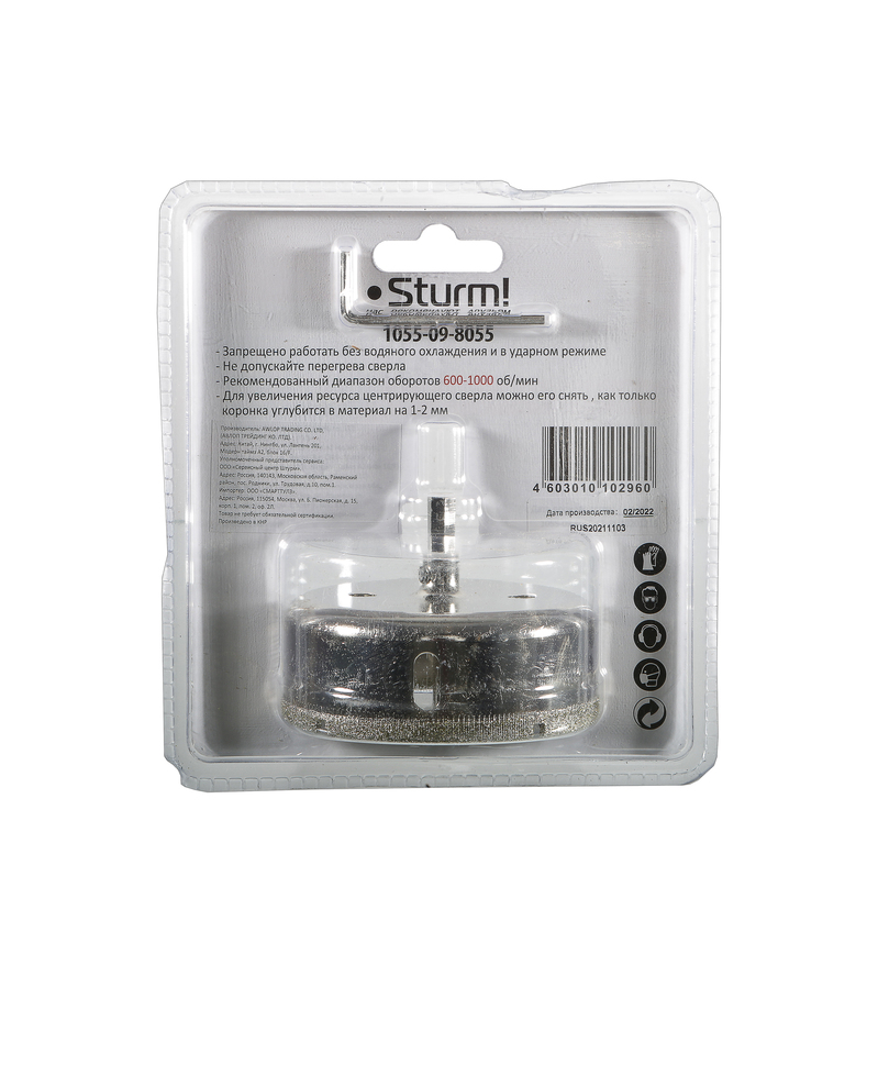 Коронка алмазн. По керам. Плитке и стеклу 80 х 55 мм, с центрир. Сверл. Sturm! 1055-09-8055