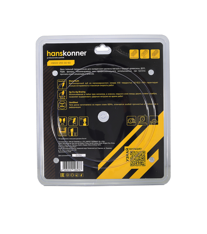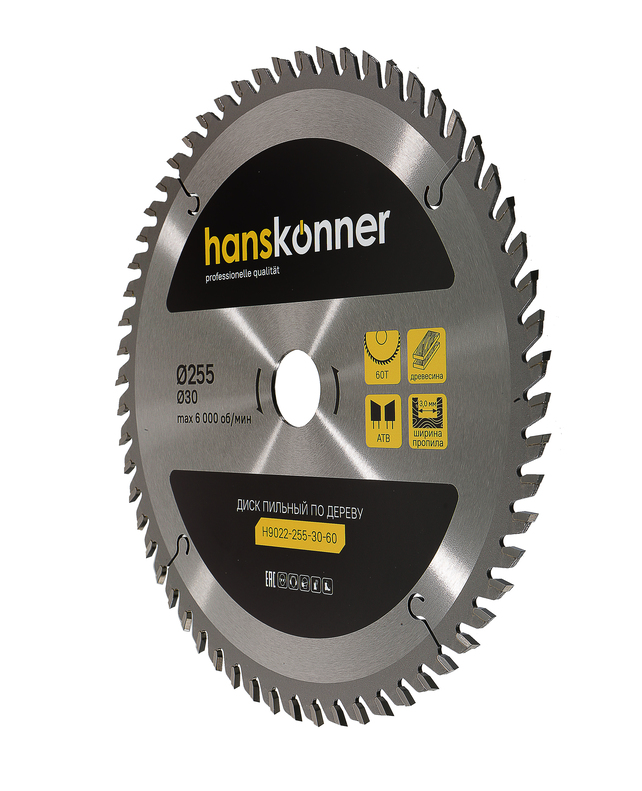 Пильный диск по дереву 255x30 мм, 60 зубьев, Hanskonner H9022-255-30-60
