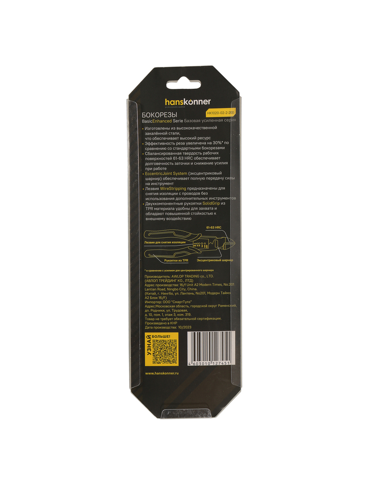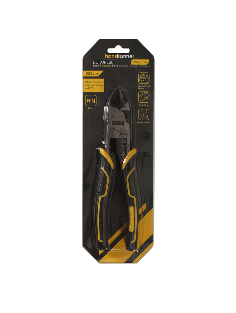 Бокорезы 200мм cо стриппером, эксц. шарнир,+30% к силе реза, СrV, Hanskonner HK1020-02-2-200