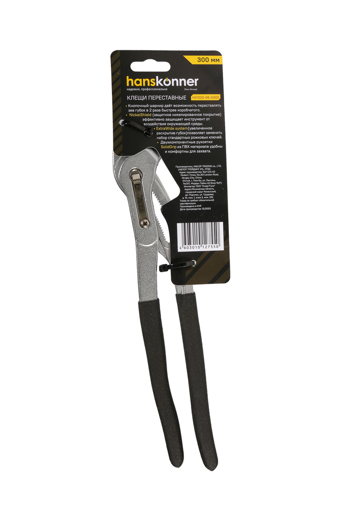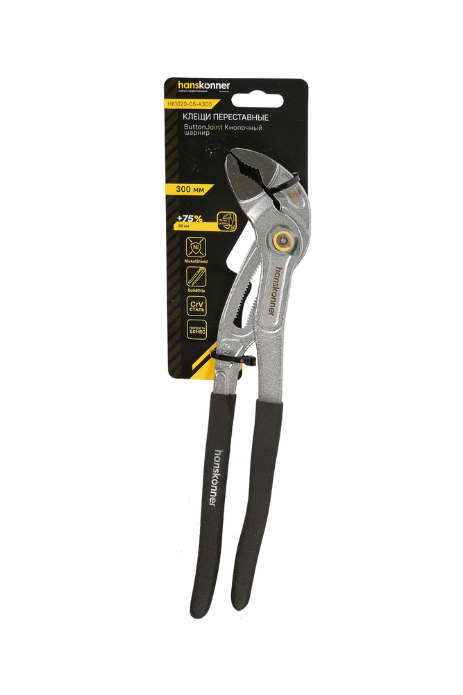 Клещи переставные 300мм, CrV, кнопочный шарнир, зев 70мм, hanskonner HK1020-06-A300