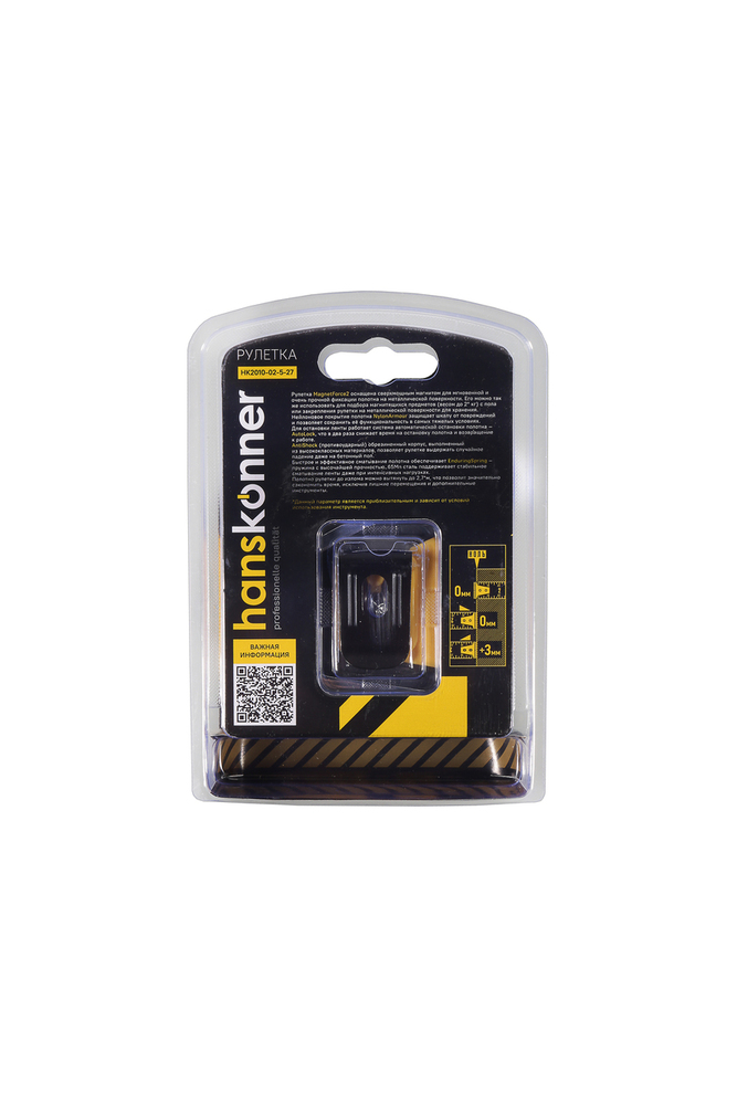Рулетка 5x27мм, автостоп, двухстор., нейлон, супермощный магнит, Hanskonner HK2010-02-5-27