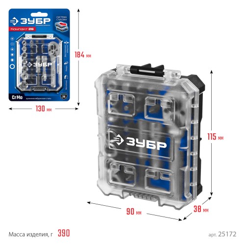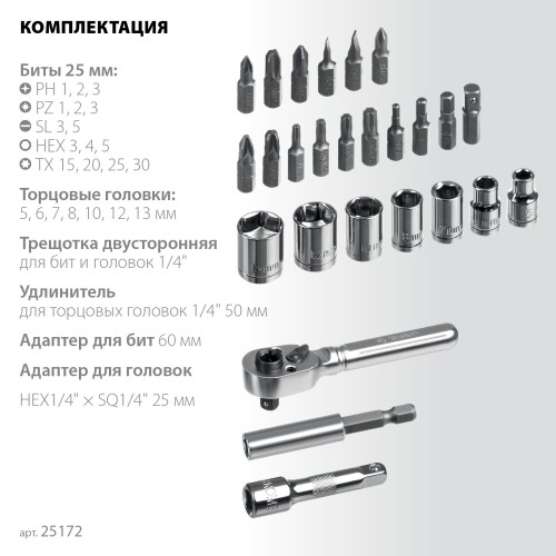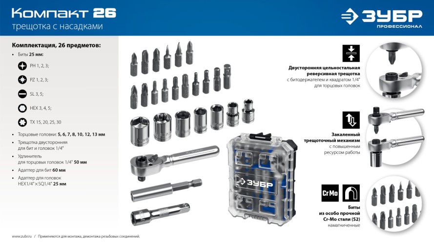 Набор трещотка с насадками ЗУБР Компакт 26 шт 25172