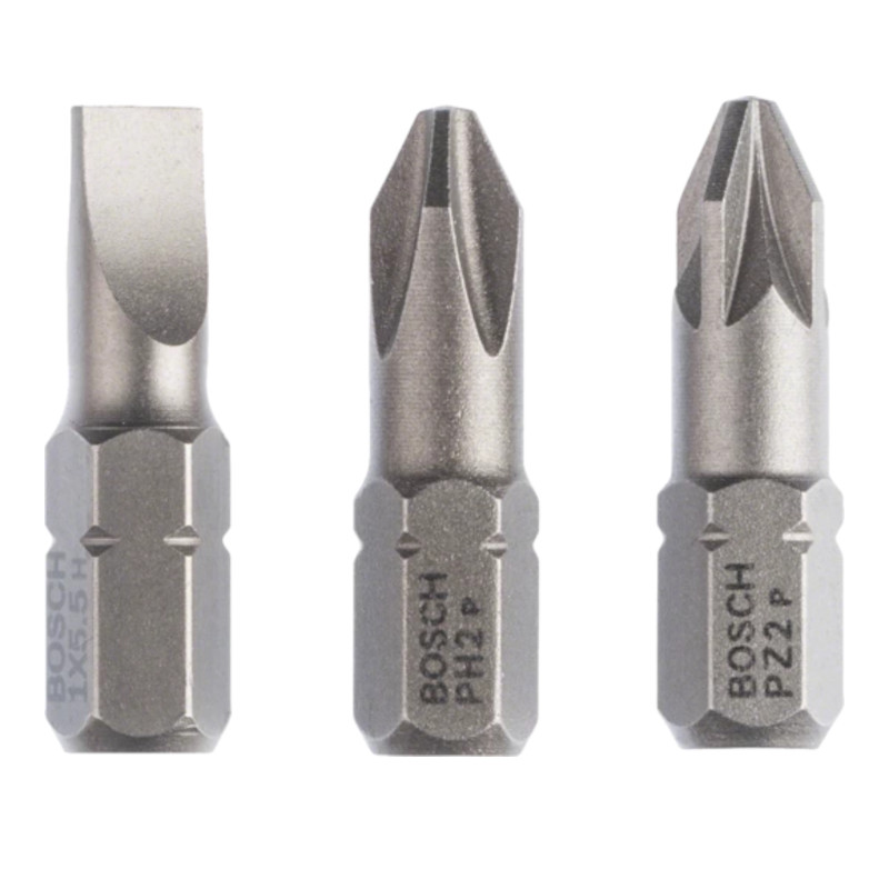 Набор бит Bosch 3шт (766) - отличный выбор для универсального применения. Изготовлены из легированной инструментальной стали S2. Размеры бит: PH2, PZ2, S1,0x5,5.