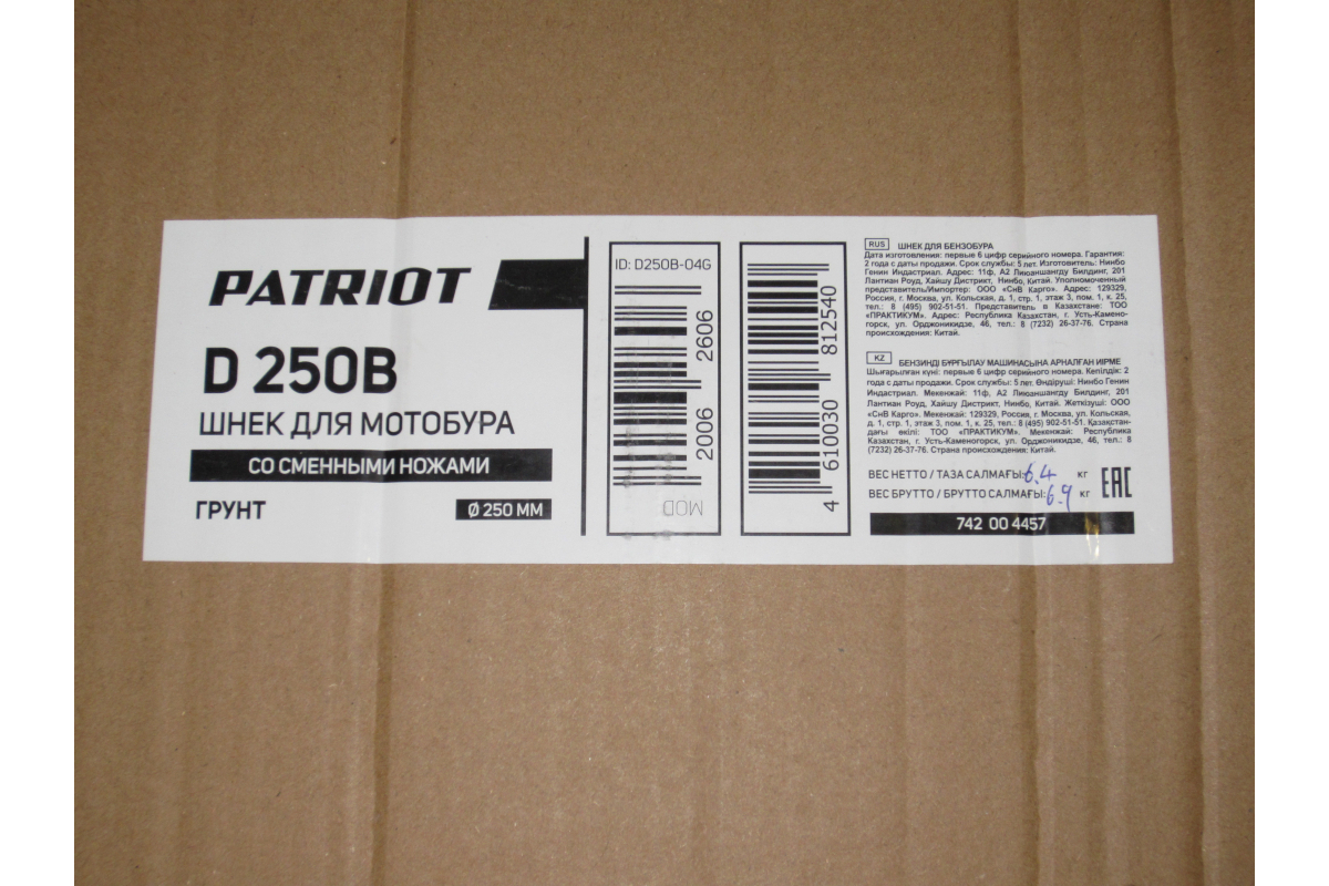 Шнек двухзаходный D 250B для грунта, диаметр 250мм PATRIOT 742004457