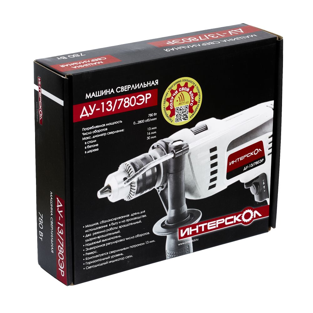 Ударная дрель ИНТЕРСКОЛ ДУ-13/780ЭР, 780 Вт, 2700 об/мин, 30000 уд/мин () 421.1.0.00