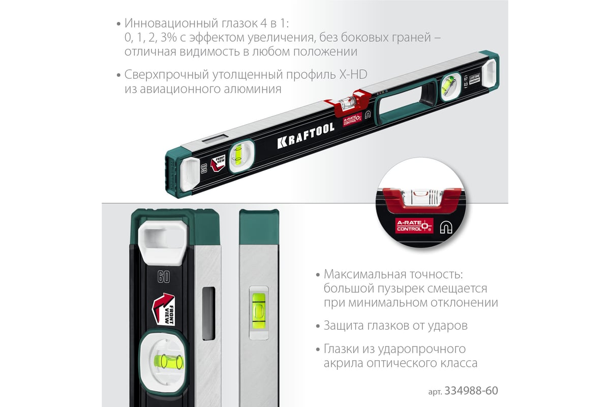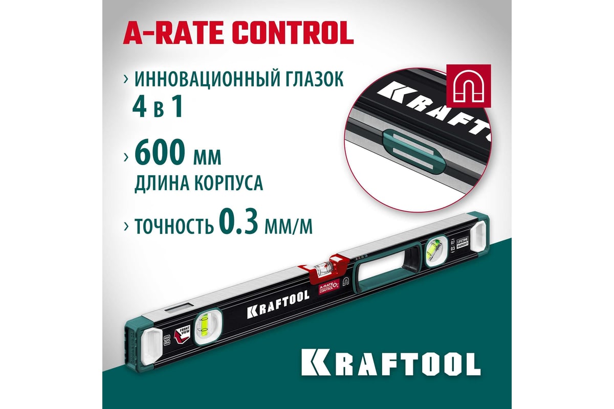 Магнитный сверхпрочный уровень KRAFTOOL A-RATE Control с зеркальным глазком, 600 мм 34988-60