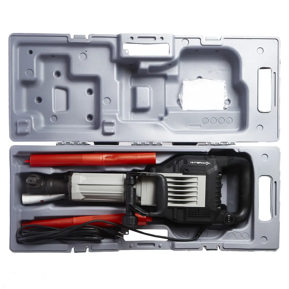 Молоток отбойный электрический ИНТЕРСКОЛ М-32/20000В предназначен для проведения разнообразных строительных работ: разрушение строительных конструкций из бетона, кирпича и аналогичных материалов, вскрытие асфальто-бетонных покрытий, рыхление твердых и мерзлых грунтов, уплотнение грунта, забивание костылей и т.п.. Инструмент работает со всем спектром оснастки с хвостовиком HEX30 (шестигранник) и обеспечивает высочайшую производительность разрушения строительных конструкций, возглавляя линейку тяжелых молотков ИНТЕРСКОЛ, придя на смену молотку М-30/2000М. Молоток оснащен совершенной системой гашения вибрации, что позволяет использовать его длительное время. Также улучшена система крепления оснастки.