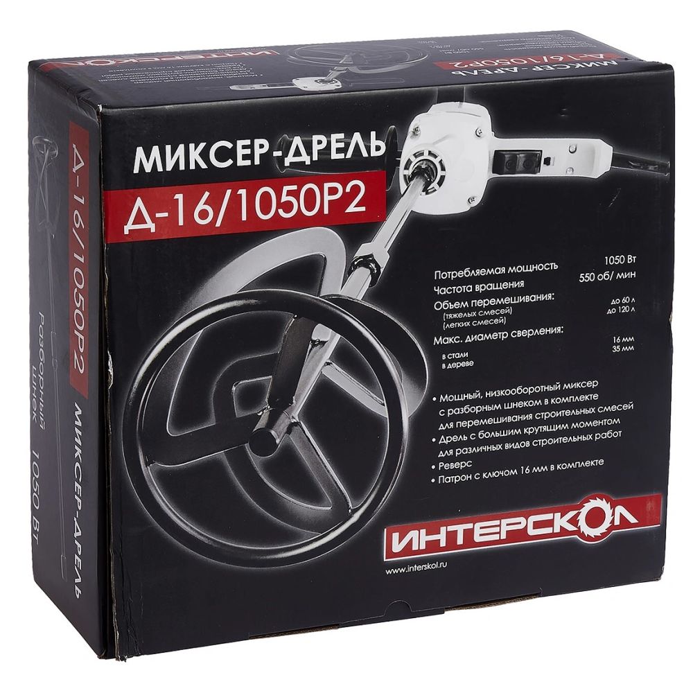 Дрель-миксер ИНТЕРСКОЛ Д-16/1050Р2, 1050 Вт, 550 об/мин () 473.1.0.00