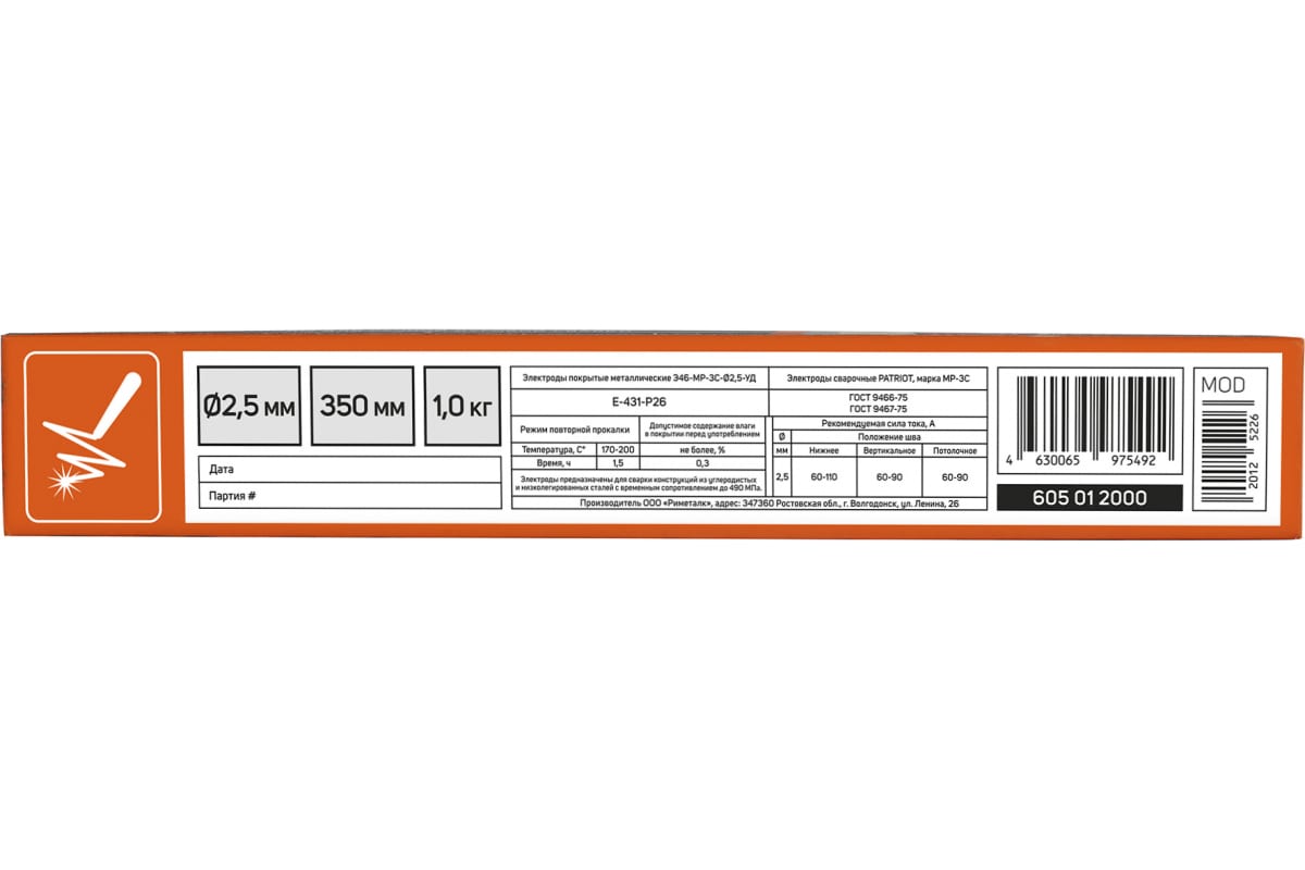 Электроды сварочные МР-3С (2.5х350 мм; 1 кг) PATRIOT 605012000