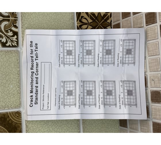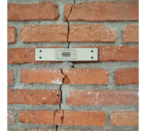 Маяк для контроля смещений и трещин DMC20 Geobond 206002 - деформационная шкала, предназначенная для контроля и систематического наблюдения за динамикой развития трещин, возникающих в стенах жилых домов, производственных сооружениях и эксплуатируемых зданиях. Деформационная шкала представляет собой 2 пластиковые пластины, на одну из которых нанесена миллиметровая сетка и шкала отсчётов, а на вторую контрольное перекрестие. Метод использования деформационной шкалы является самым простым решением для наблюдения за трещинами, которые могут образоваться в результате следующих явлений: неравномерная осадка фундамента; температурные деформации стен большой протяженности; перегрузка отдельных участков стен в результате демонтажа сооружения без соблюдения технических требований. Деформационная шкала DMC20 состоит из двух пластиковых пластинок. Они крепятся с обеих сторон трещины так, чтобы при раскрытии трещины пластинки скользили одна по другой, а красное перекрестие одной пластины перемещалось относительной миллиметровой шкалы другой пластины, позволяя взять отчет по шкале и занести его в журнал наблюдений. Пластинки должны быть закреплены параллельно друг другу. После крепления деформационной шкалы к зданию, ей присваивают номер и отмечают на шкале номер и дату установки. По замерам расстояния между рисками шкалы определяют величину раскрытия трещины.
