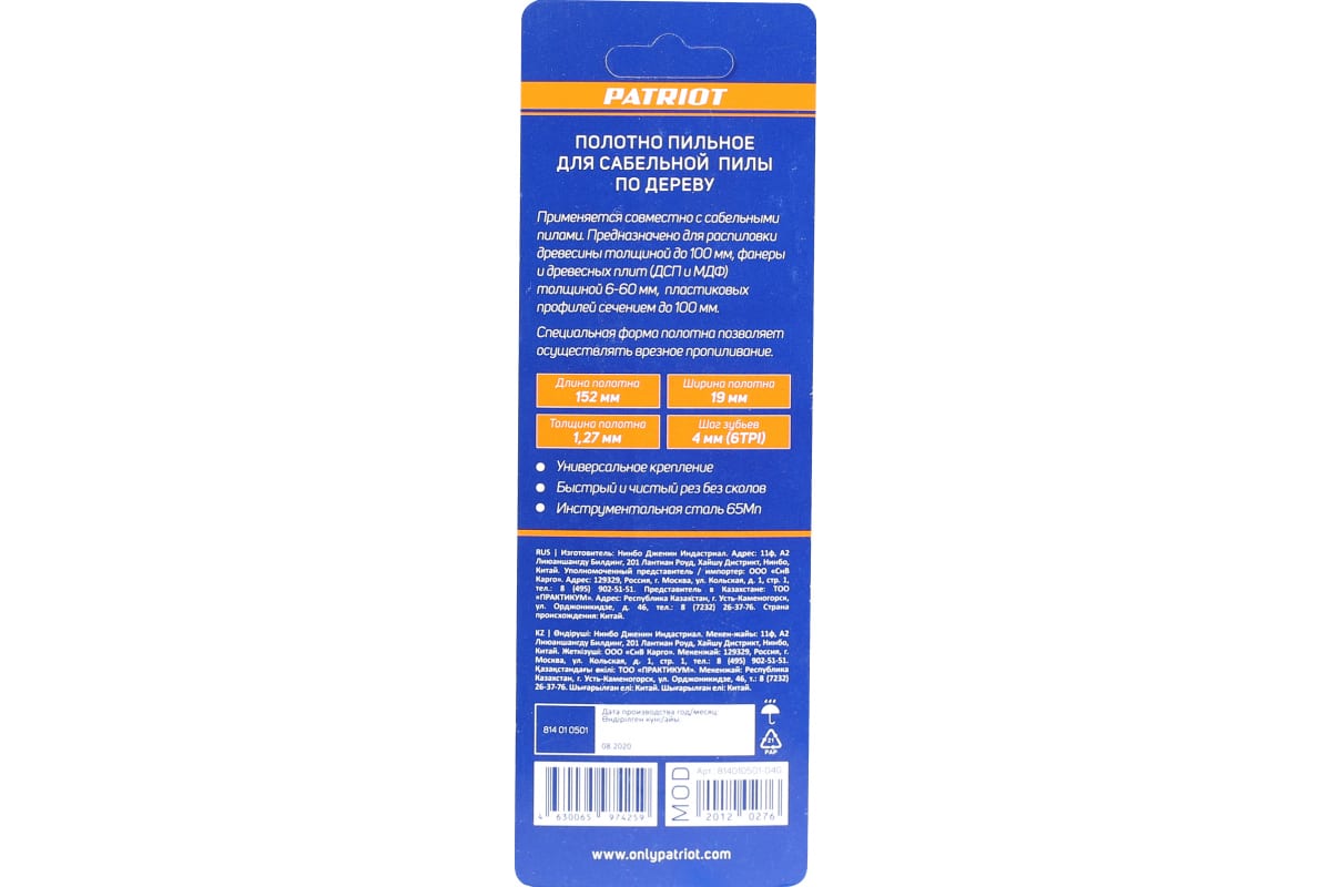 Полотно пильное по дереву (2 шт; 152х19х1.27 мм; 6TPI) для сабельной пилы PATRIOT 814010501